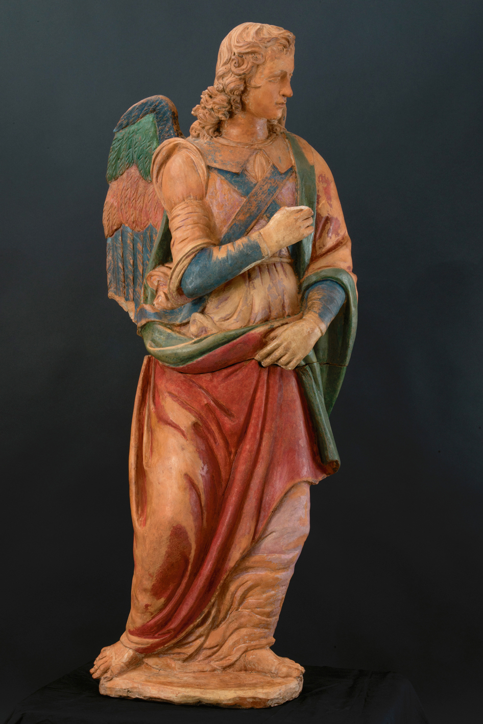 Realizzato a cavallo tra il XV e il XVI secolo, l’Angelo Annunciante della Lucchesia è stato protagonista di una lunga diatriba sulla sua paternità, che ha contribuito ad alimentare curiosità e interesse nel corso degli anni. E se fosse davvero un angelo di Leonardo? La questione dell’attribuzione iniziò nel 1957, quando lo storico e critico d’arte Carlo Ludovico Ragghianti la indicò, piuttosto prudentemente, come opera ascritta alla bottega di Andrea del Verrocchio. Fu lo studioso Carlo Pedretti, alla fine degli anni ’90, a fare il nome di un giovane Leonardo da Vinci, alimentando ulteriormente la fama e il mistero attorno all’opera. Più recentemente, Maria Teresa Filieri, così come Giancarlo Gentilini, l’assegnano, invece, allo scultore fiorentino Benedetto Buglioni, vicino ai della Robbia.