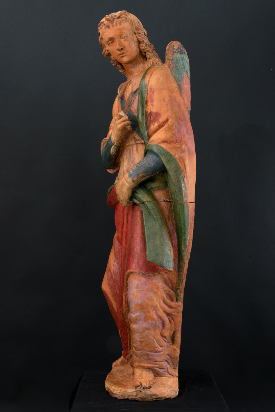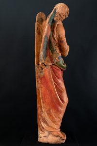 La statua, raffigurante l’Arcangelo Gabriele nel momento immediatamente precedente l’annunciazione, che si trovava in pessime condizioni conservative, è stata recentemente sottoposta ad un accurato restauro, reso possibile dalla disponibilità dell’Arcidiocesi di Lucca e realizzato dall’Opificio delle Pietre Dure di Firenze. Promosso e finanziato dal Centro LEO LEV, che ha esposto precedentemente l’opera, il restauro ha restituito un capolavoro ritrovato, con la sua originaria policromia, quasi interamente perduta, consolidandone la struttura. Quest’ultima era stata infatti gravemente compromessa nel 1773, quando la statua fu colpita accidentalmente da da una scala e frantumata in oltre venti pezzi.