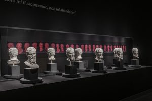 Ogni testa è stata digitalizzata e stampata in 3D in resina in scala 1:1, grazie a Factum Foundation for Digital Technology in Conservation, organizzazione no-profit spagnola specializzata nell’utilizzo delle nuove tecnologie per la conservazione del patrimonio culturale; è stata digitalmente “mappata” nei punti chiave e nelle corrispondenze, sovrapposta e confrontata in un lavoro di ricerca unico nel suo genere, che ha unito per la prima volta l’esperienza digitale al rigore accademico nell’individuazione delle opere originali, nominate nell’inventario della casa abitata da Daniele da Volterra, e della “genealogia” delle varianti da loro derivate. Per aiutare il confronto, sia agli occhi degli esperti che tramite software di machine learning, per l’esposizione i busti in resina sono stati allineati seguendo una linea immaginaria ricercata e tracciata lavorando sulle stampe 3D.