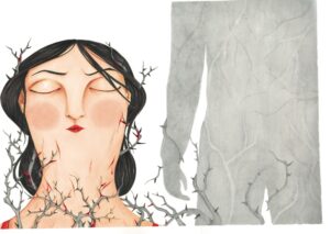 Simbolo della lotta per l’autoaffermazione della donna, la seconda figura scelta da Anna Paolini è la pittrice Artemisia Gentileschi, nata a Roma nel 1583. La storia è nota ed ancora colpisce il modo in cui “Artemisia decise di non scendere a compromessi e di gridare forte il suo dolore. Libera dalla vergogna che non le era mai appartenuta, come una vera alchimista Artemisia preparava i colori che sulle sue tele diventavano coraggio, divampando in opere che da allora pretendono giustizia e verità”.