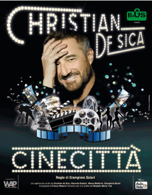 Christian De Sica ha attraversato in maniera trasversale la Città del Cinema: da bambino ha visto girare per casa i mostri sacri del nostro cinema prima e quelli dell’epopea dei kolossal di Hollywood sul Tevere poi. E’ cresciuto con Rossellini e i suoi figli e ha sposato la sorella di Carlo Verdone. Nella sua vita professionale ha partecipato a decine di film da protagonista, raccogliendo, nella quasi totalità, grandissimo successo. Christian De Sica è non solo attore, ma anche autore, sceneggiatore, regista. Chi meglio di lui, allora, per raccontare la storia di Cinecittà, in uno spettacolo elegante e sorprendente che va da Mussolini al neorealismo, dal cinepanettone a Santoro e alla De Filippi?