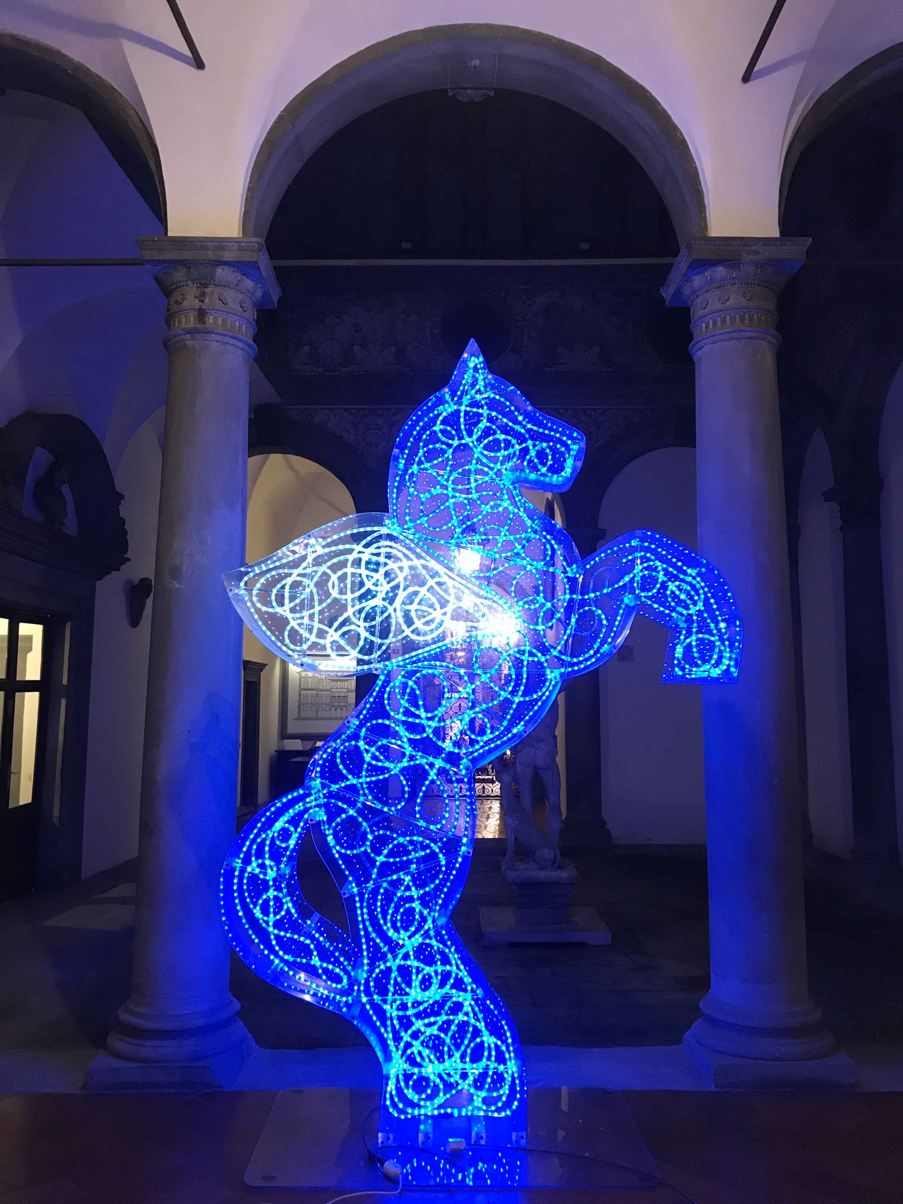 La Collezione Roberto Casamonti in Palazzo Bartolini Salimbeni a Firenze è al momento chiusa al pubblico causa emergenza dovuta alla pandemia ma le sue porte rimangono aperte, non solo idealmente, per ospitare, nel raffinato cortile cinquecentesco, il Pegaso opera dell’artista Marco Lodola. Un segno di luce e di speranza che Roberto Casamonti vuole offrire come regalo di Natale ai visitatori, anche solo di passaggio per via Tornabuoni.