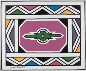 Esther Mahlangu è nata nel 1935 a Middelburg, Mphumalanga, in South Africa ed appartiene alla tribù Ndebele. Con questo termine ci si riferisce a vari gruppi etnici diffusi nello Zimbabwe occidentale e nella regione del Transvaal a nord-est del South Africa.