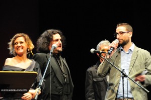 Lanciato a gennaio, all’interno della rassegna Politeama in primo piano 2013, il concorso ha visto arrivare oltre 90 testi, a volte già messi in musica dagli autori, provenienti da tutte le parti di Italia. Uno persino dall’Australia! E i dieci finalisti, ieri, erano tutti lì (eccetto il concorrente di Melbourne) nella platea del Politeama, per sentire le proprie canzoni messe in musica e, soprattutto, per vederle giudicare dalla giuria. A decretare i 3 vincitori erano stati chiamati da Roberta Betti, presidente del teatro Politeama, la cantante Irene Grandi, l’attore e cantautore David Riondino, il gruppo pisano dei Gatti Mézzi, la cantautrice romana Pilar, la Bandabardò quasi al gran completo, l’attrice Rosanna Gentili e il chitarrista e cantante Maurizio Geri. E al loro fianco, come lo scorso anno, c’era un folto gruppo di giornalisti, formato per questa edizione da Fulvio Paloscia di Repubblica, Edoardo Semmola del Corriere Fiorentino, Olga Mugnaini della Nazione, Gabriele Rizza dell’Unità, Miriam Monteleone del Tirreno, Monica Nonno di Rai Radio 3, Giuseppe Barone di Controradio e Massimo Innocenti di Radio Insieme. Caterpillar patrocinava l’evento.