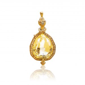 “Il Fiorentino”, diamante di dimensioni eccezionali e di color giallo citrino era, nel XVII secolo, la seconda gemma al mondo, dopo quella appartenente all’imperatore Moghul. Acquistato nel 1601 da Ferdinando I de’ Medici, che lo comprò dal portoghese don Ludovico Castro, conte di Montesanto, fu affidato ancora grezzo al tagliatore Pompeo Studendoli, artigiano veneziano residente a Firenze, che lo lavorò per un lungo periodo, fino al 1615. Il risultato fu uno splendido gioiello a forma di mandorla, con taglio a doppia rosa di nove lati e 127 faccette, che venne poi inserito entro una montatura a pendente altrettanto sfarzosa. Un manufatto prezioso, icona di lusso e di potere, che rimase nelle mani dei Medici fino al passaggio della Toscana ai Lorena, quando venne portato a Vienna, dove risulta fino ai primi del Novecento. Nel 1918, con il crollo dell’impero asburgico, i gioielli della corona d’Austria presero la via dell’esilio, in Svizzera: con loro partì anche il “Fiorentino” e, da allora, della “più stupenda cosa che sia in Europa”, come era stato definito dal cardinale del Monte, si sono perse le tracce.