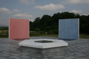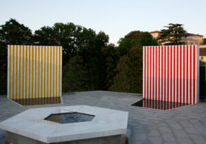 Il parco di Villa Medicea La Magia – Arte Contemporanea, a Quarrata (Pt), inaugura sabato 14 maggio 2011 Muri Fontane a 3 colori per un esagono, una grande fontana monumentale, realizzata dall’artista francese Daniel Buren per la Città di Quarrata, grazie al Comune di Quarrata e al suo sindaco Sabrina Sergio Gori, interamente finanziata della Fondazione Cassa di Risparmio di Pistoia e Pescia che ha scelto di donare l’opera al Comune.