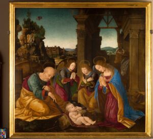 L’adorazione del Bambino di Lorenzo di Credi, maestro del Cinquecento fiorentino, noto per la sua finezza e precisione, apre questa sequenza. Il Bambino ci appare al centro della scena, circondato da Maria, Giuseppe e alcuni angeli, di cui colpisce la delicatezza dei volti; sullo sfondo si intravedono i pastori spaventati “…svegliati all’improvviso da un angelo avvolto nella luce.” E la storia continua, con la voce narrante di Graziella Cirri, seguendo l’Angelo che prosegue nel suo compito di annunciare al mondo questo straordinario evento, i pastori e le genti che s’incamminano fino a Betlemme per vedere il Bambino, i Magi che condotti da una stella arrivarono per omaggiarlo di doni, oro incenso e mirra. Quali immagini se non quelle tratte dalle tavole trecentesche di Cenni di Francesco di ser Cenni, di Mariotto di Cristofano e di Taddeo Gaddi, che ci catturano con la preziosità dei loro fondi oro e con l’intensità dei personaggi, possono raccontare con la stessa potenza una storia così bella?