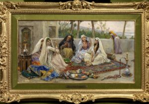 Il secondo giorno, mercoledì 25 maggio, ci sarà l’asta di Dipinti dei secoli XIX e XX: circa 200 lotti provenienti da collezioni private italiane. Spicca, tra gli altri, la Congiura dei patrioti toscani di Giovanni Fattori, un piccolo olio su tavola (12,5 cm X 10 cm) firmato sul retro e recante un’etichetta con dedica, proveniente dalla collezione Enrico Checcucci, esposto a Firenze nel 1925 per la Mostra del centenario della nascita dell’autore, e pubblicato sui seguenti volumi Giovanni Malesci, Giovanni Fattori, Novara, 1961, pag. 27, n. 7, p. 343, e sul Bruno della Chiesa, L’opera completa di Giovanni Fattori, Milano, 1970, p. 87, n. 6 (stima 45.000-55.000 euro, foto 2294). Da segnalare anche due bellissime opere del livornese Ulvi Liegi: la prima, un olio su tela, rappresenta un panorama di Colline fiorentine (stima 55.000-65.000 euro, foto 2533), la seconda, un olio su compensato, è un Interno di salotto, firmato sul retro, titolato e datato 1933 (stima 25.000-30.000 euro, foto 2465). L’opera fu esposta nella grande antologica che Livorno dedicò al suo artista nel 1958. Si vedano infine l’Aratura del toscano Francesco Gioli, un olio su tela firmato e datato 1909 (stima 20.000-25.000 euro, foto 1871) e i Pescatori nel Golfo di Napoli, un olio su tavola di Attilio Pratella, firmato sul retro (stima 15.000-20.000 euro, foto 1873).