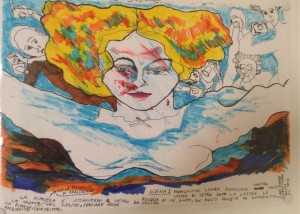 A questo nucleo si aggiungono circa 100 opere su carta, nate durante la realizzazione dei suoi film. Con il debutto al cinema, la sua passione pittorica viene convertita in maniera funzionale e Bellocchio, come possiamo vedere in questa mostra, non ha mai smesso di utilizzare il segno e il colore durante tutta la sua carriera. Sono schizzi, bozzetti, disegni, abbozzi, gouache, acquarelli, tecniche miste realizzate dal regista-artista – premiato con il Leone alla Carriera al Festival di Venezia 2013 – per “pre-visualizzare” su carta tutte le componenti visive dei film: i personaggi e i loro tic comportamentali, il loro profilo psicologico ma anche i costumi e gli ambienti, le scenografie e le condizioni illuminotecniche, atmosferiche e cromatiche. La maggior parte di queste opere sono corredate da appunti e frasi stese con tratto rapido, note tecniche di ripresa o destinate ai collaboratori (scenografi, direttori della fotografia, costumisti). L’articolato apparato grafico ha accompagnato tutta la produzione di Bellocchio, a partire dal suo lungometraggio di esordio “I pugni in tasca” del 1965 e “La Cina è vicina” del 1967 (premiato nello stesso anno al Festival di Venezia con il Leone d’Argento), al complesso film in costume con Marcello Mastroianni e Claudia Cardinale, “Enrico Quarto” del 1984, fino ad arrivare a film recenti come “La Bella Addormentata” (con cui ha vinto nel 2013 il Premio Monicelli) e al pluripremiato “Sangue del mio sangue” del 2015.