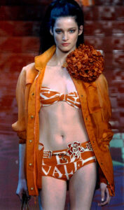 L’esposizione presenta oltre 10.000 fotografie montate su un passe-partout nero, un accorgimento scenografico che le fa emergere come da un’oscurità profonda, restituendo il carattere spettacolare e innovativo del periodo. Le immagini ritraggono sfilate di moda di quegli anni, testimoniando l’esuberanza e la spregiudicatezza stilistica che hanno reso iconici marchi come Cavalli, Gucci, Fendi, Richmond e Kenzo, e ancora YSL, Louis Vuitton, Dior o Chanel.