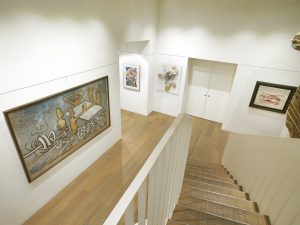 Procedendo in questo excursus cronologico, parallelo allo scorrere della Storia, ci soffermiamo su altri capolavori come Nascita di Venere che Alberto Savinio dipinse nel 1950 – in mostra ci sono altri dipinti dello stesso autore più o meno coevi – dove la classicità del Mito viene reinterpretata e filtrata attraverso le suggestioni surreali e metafisiche che lo contraddistinguono. Gli fa da contraltare Ottone Rosai con Strada, della metà degli anni ’50, che ci ricorda uno degli scorci tipici di via San Leonardo a Firenze, dove Rosai ha avuto la sua casa studio dal 1933 al 1957.