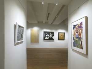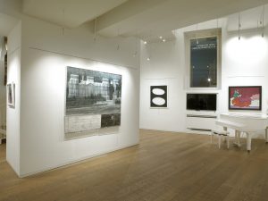 A segnare il passaggio agli anni ’60 è una tela emblematica di Giorgio de Chirico, Ettore e Andromaca, dove come il fratello Savinio, l’artista si appropria di un tema greco, qui l’Iliade di Omero, e lo mette in scena secondo i canoni della pittura metafisica. Del 1960 è anche Volume, una delle idropitture in nero di Dadamaino, dove è evidente la sua rottura con la pittura tradizionale verso una fase di sperimentazione e di ricerca. In mostra anche Gradazione 15N nero bianco su nero, 1966-1972, di Marina Apollonio una delle artiste italiane più rappresentative del movimento Ottico-Cinetico internazionale che iniziò la propria ricerca creativa di comunicazione visiva proprio agli inizi degli anni ’60. Tra le donne che hanno avuto un ruolo incisivo nella storia dell’arte, non poteva mancare Carla Accardi, con più lavori, come il bellissimo Senza titolo, vernice su sicofoil, del 1967, rarissimo per le sue dimensioni (4 metri).