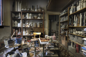 Guido Cozzi, il terzo dei fondatori di Atlantide, fin da giovanissimo si appassiona alla fotografia, che diventa la sua professione nel 1987. Per l’editoria specializzata ha realizzato centinaia di servizi fotografici di carattere geografico, etnografico e turistico. Oggi alterna campagne fotografiche per i grandi archivi internazionali, a ricerche personali sul territorio, nelle quali sperimenta diversi stili narrativi. Per BABELE: non pervenuta sceglie alcune immagini di Botteghe, una testimonianza sullo stato dell’artigianato fiorentino all’inizio del terzo millennio, tra eccellenza e fragilità. Il progetto consiste nel documentare metodicamente e con stile rigoroso i luoghi di lavoro degli artigiani nella loro quotidianità, senza nessuna manipolazione di oggetti o luci. L’artigiano è assente, anche se se ne intuisce la presenza, la bottega è vuota, silenziosa testimone della graduale rarefazione dei lavori tradizionali e, con loro, della secolare cultura del “saper fare”.