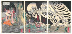 Ognuno di questi autori era specializzato nel suscitare un diverso sentimento in chi le osservava; è così che Tsukiyoka Yoshitoshi, ultimo grande maestro dell’Ukiyo-e, sapeva rendere l’opera sanguinosa e terrificante, come ne l’Uccisione del vecchio Tanuki da parte di Naoyuki nel palazzo di Fukujima; Kuniyoshi Utagawa era in grado di rendere la scena spaventosa e di forte impatto visivo, come nel trittico La principessa strega Takiyasha e lo scheletro [del padre] da Storia di Utö Yasutaka, in cui l’enorme scheletro incombe su tutto l’impianto compositivo; d’altro canto, Chikanobu Yoshu è noto per la massima tensione psicologica che sapeva infondere nei suoi lavori, Kyosai Kawanabe per l’atmosfera divertente e grottesca, mentre Kunisada, con la sua onnipresente e posata grazia, era invece l’autore ideale per generare empatia verso protagoniste tragiche e romantiche.